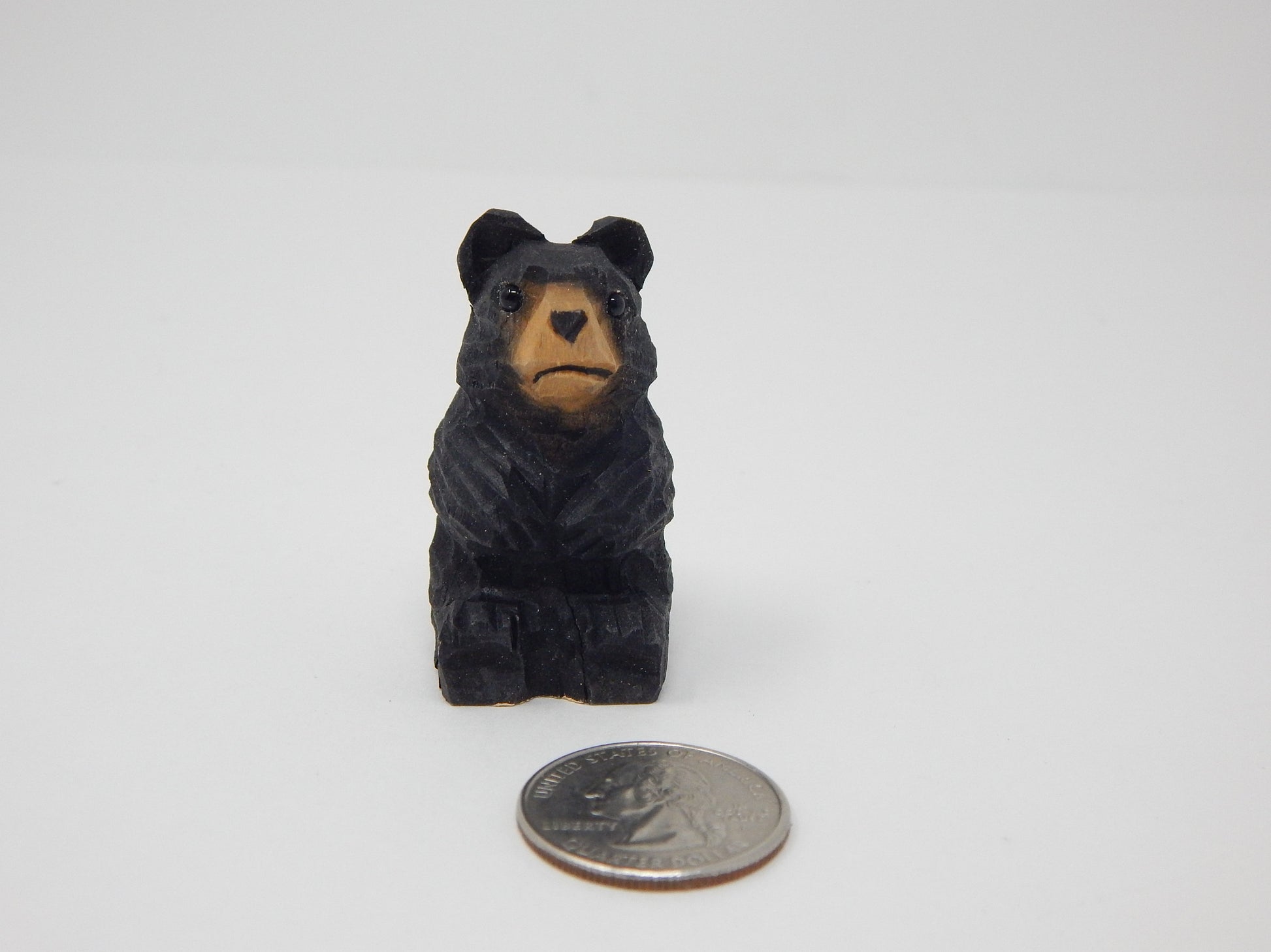 Black Bear Figurine Wood Carving Miniature Decor Statue Art Craft Small Animal