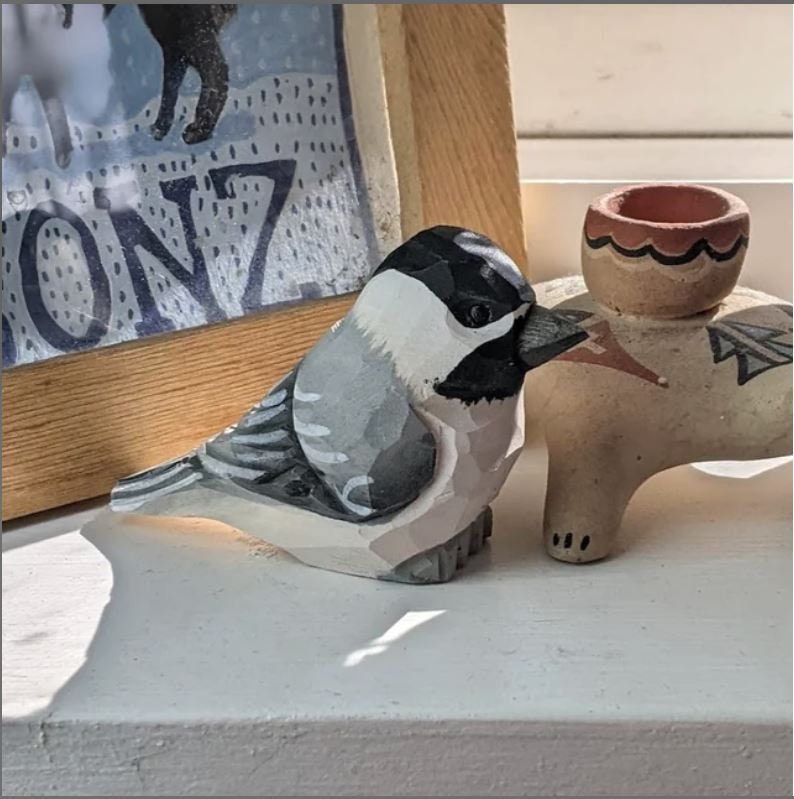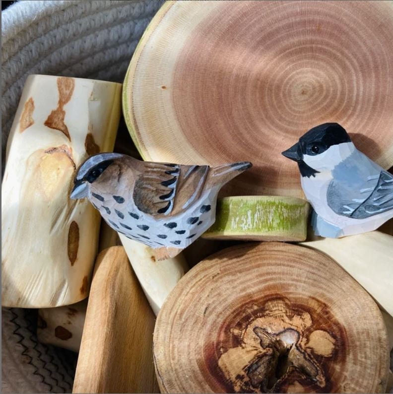 - SMALL WOODEN CHICKADEE FIGURINES – These cute little birds fit in the palm of your hand and are the perfect gift for bird lovers