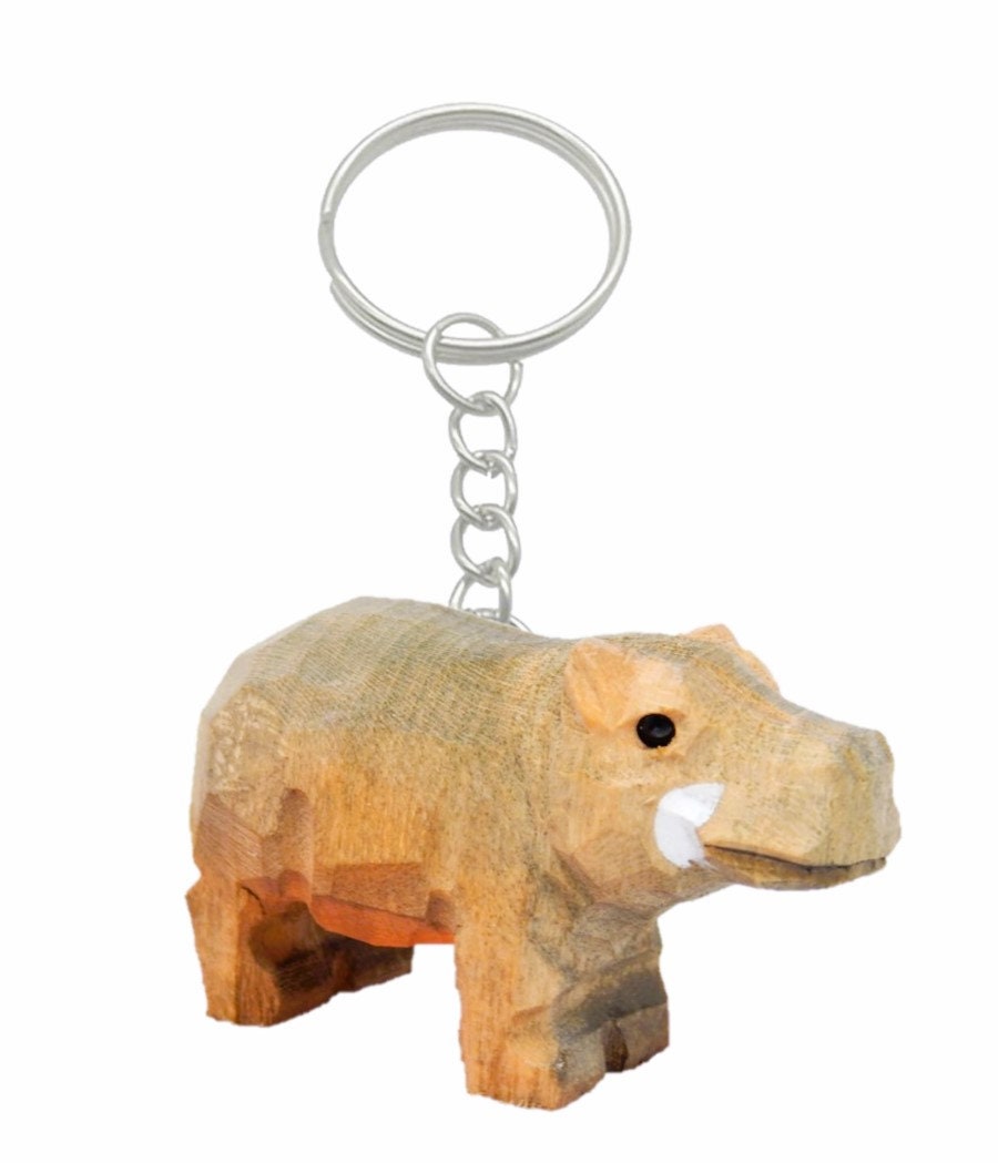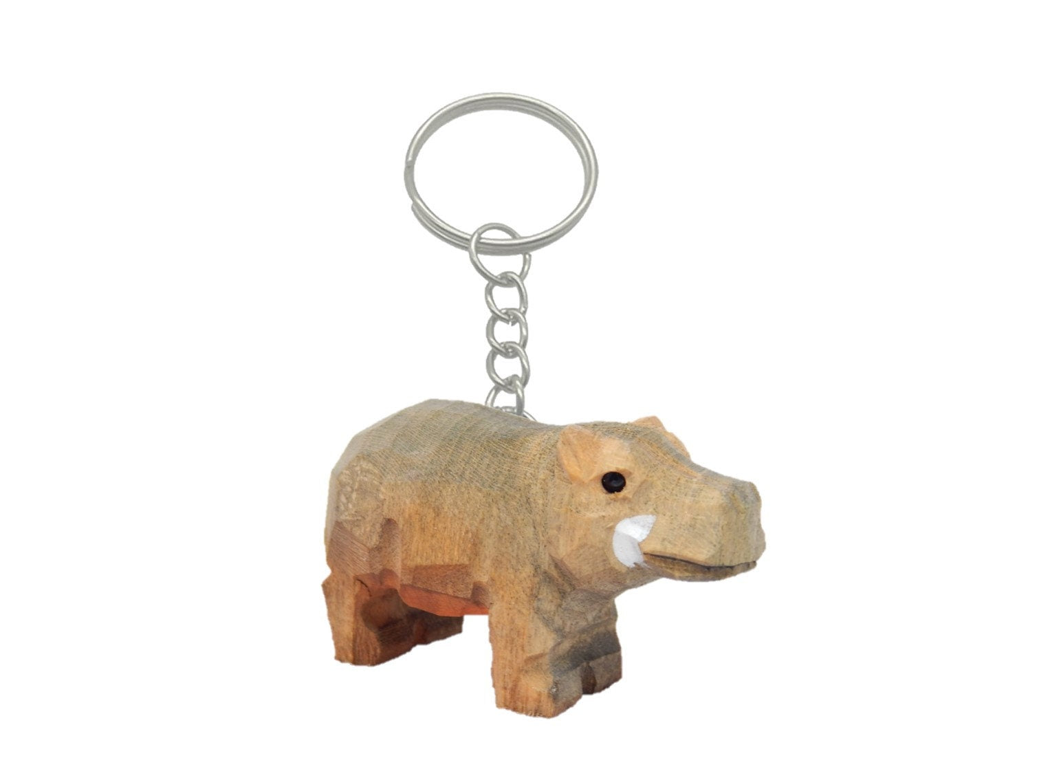 Hippo Keychain Ring Hook Clip Charm Miniature Wood Mini Figurine Small Animal