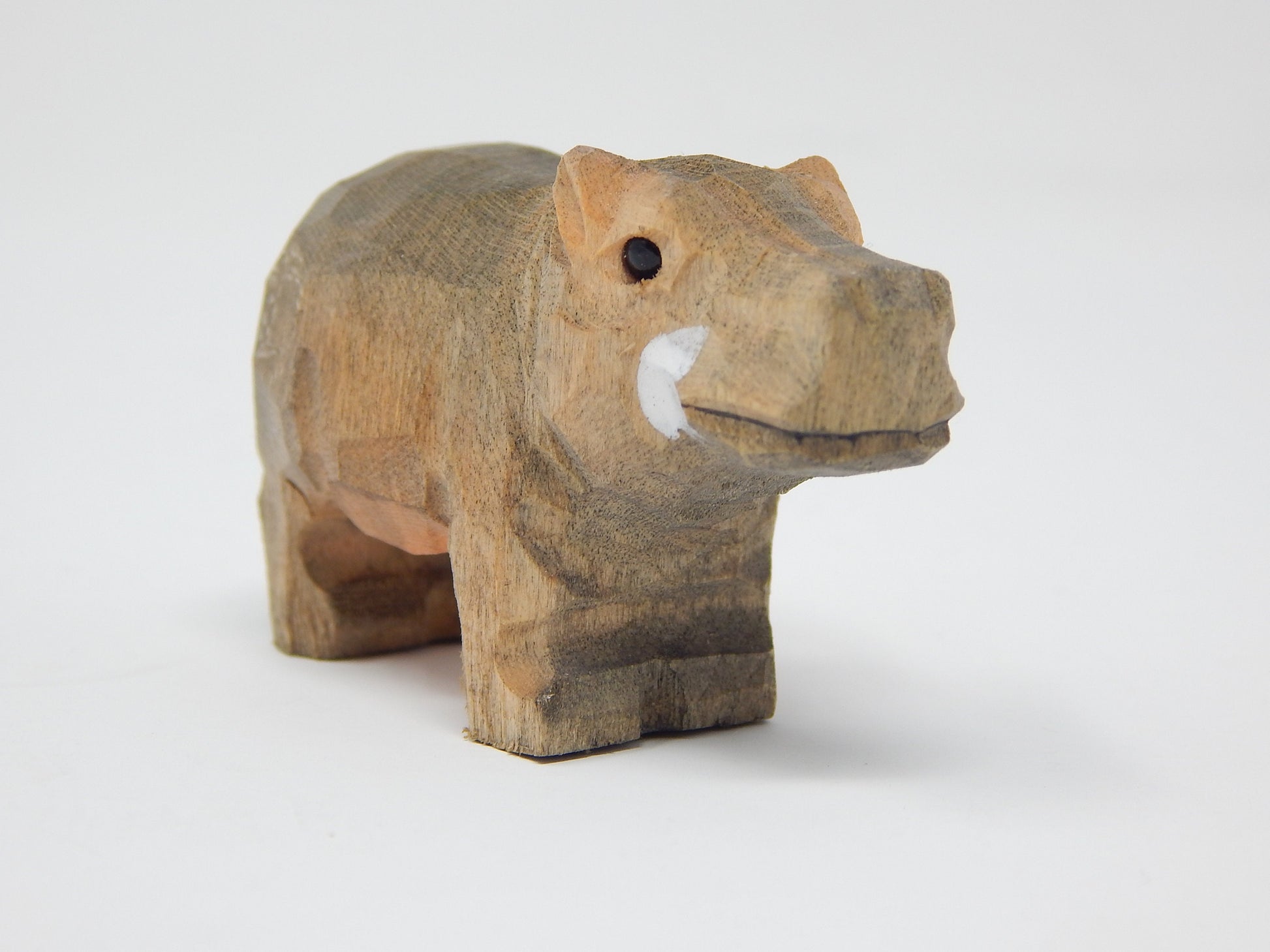 The hippo is carefully carved from recycled wood and hand painted with vibrant colors that attempt to match nature's beauty. The little eyes are also carefully made of glass.