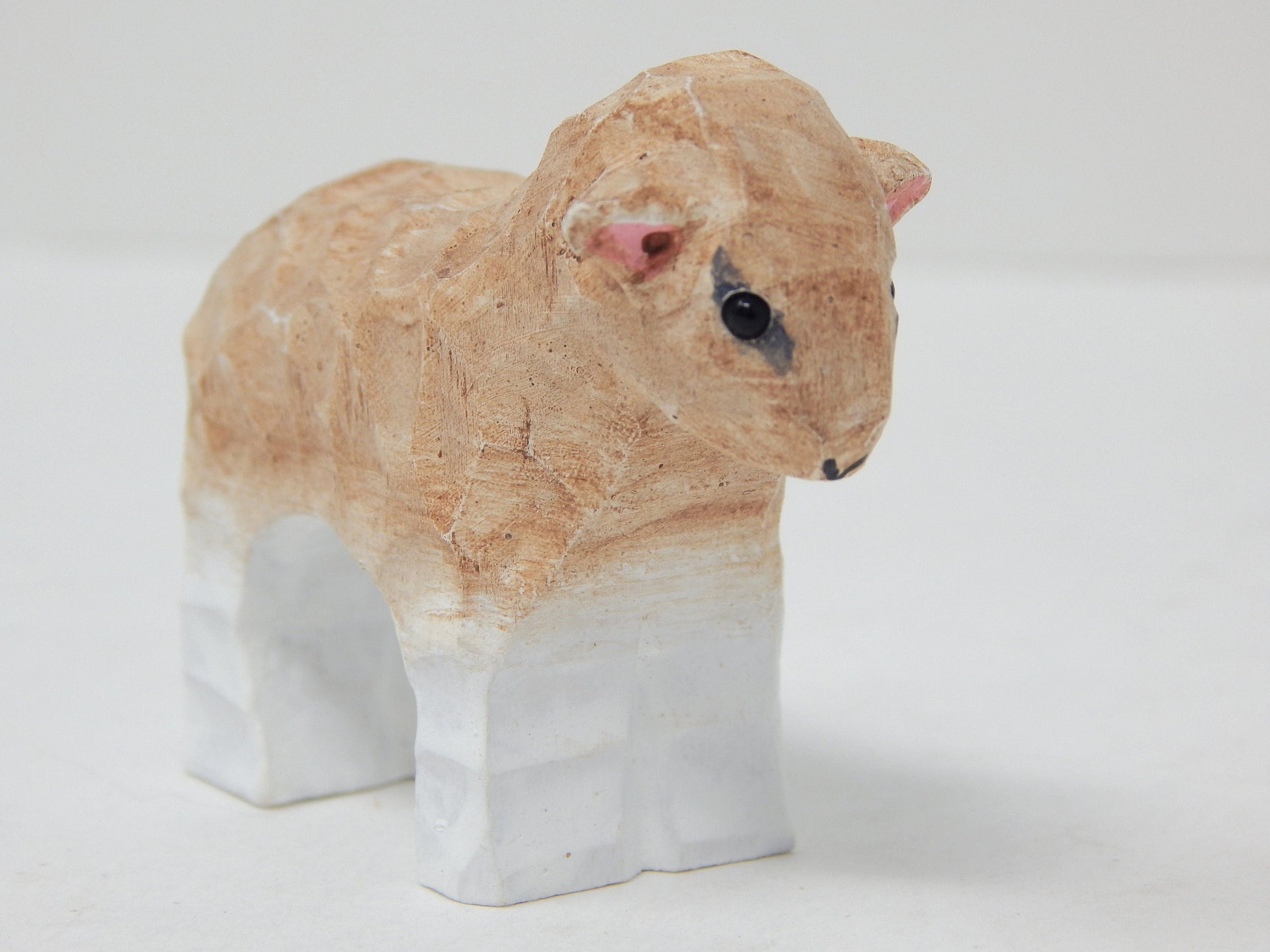 Sheep - Little Lamb Farm Wood Figurine Baby Goat Ewe Domestic Miniature Barn Small Animal Toy Hand Carve Home Decor Folk Ornament Minifigure